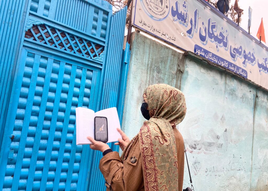 دختران عضو انجمن ادبی سوزنطلایی در اعتراض به محدودیتها در برابر آموزش زنان و دختران در کشور، پشت درهای بستهی مکاتب و دانشگاهها در صنفهای آنلاین شرکت کردند.