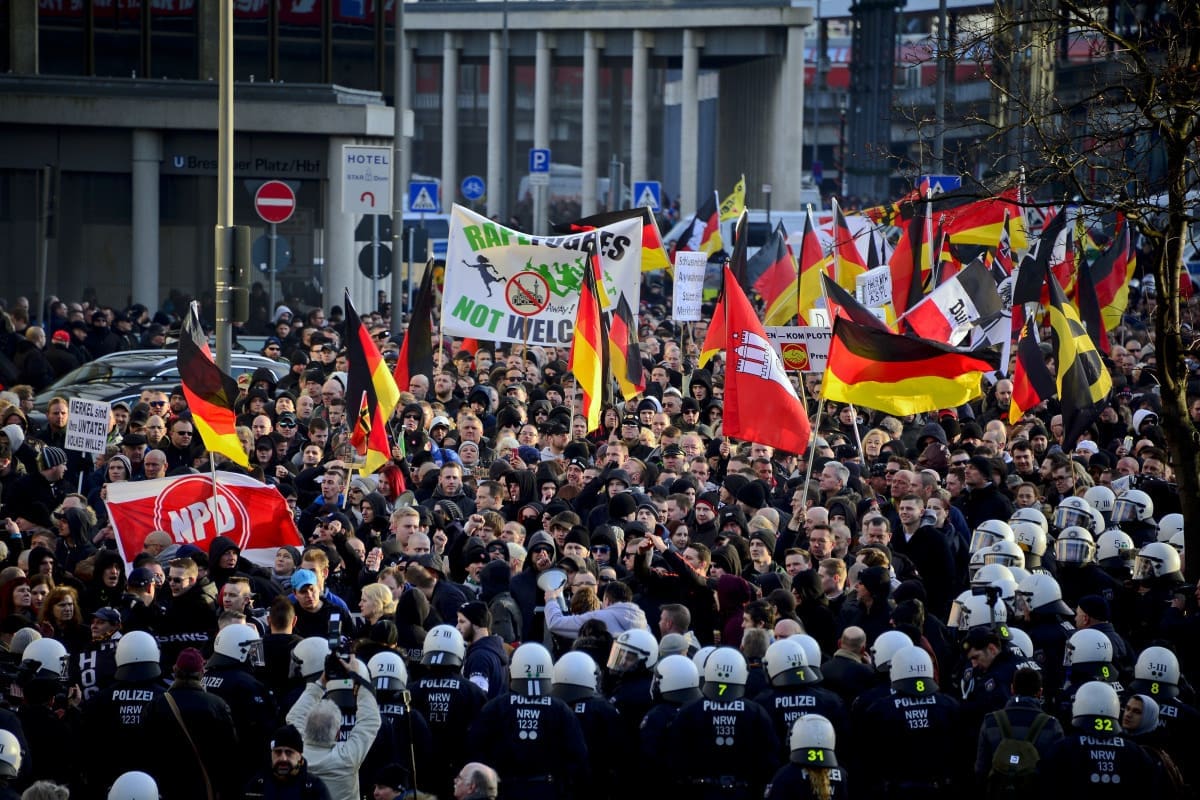 این معترضان به سیاستها و ایدههای حزبِ راست افراطی «آلترناتیو برای آلمان» اعتراض کرده و این حزب را با حزب ناسیونال سوسیالیست آلمان (حزب نازی) مقایسه کردهاند. آنان شعارهایی چون «نازیها بیرون!» و «حالا ۱۹۳۸ نیست!» را سر داده و به بیگانهستیزی و ایدههای ضدِ پناهندهی این حزب اعتراض کردند.