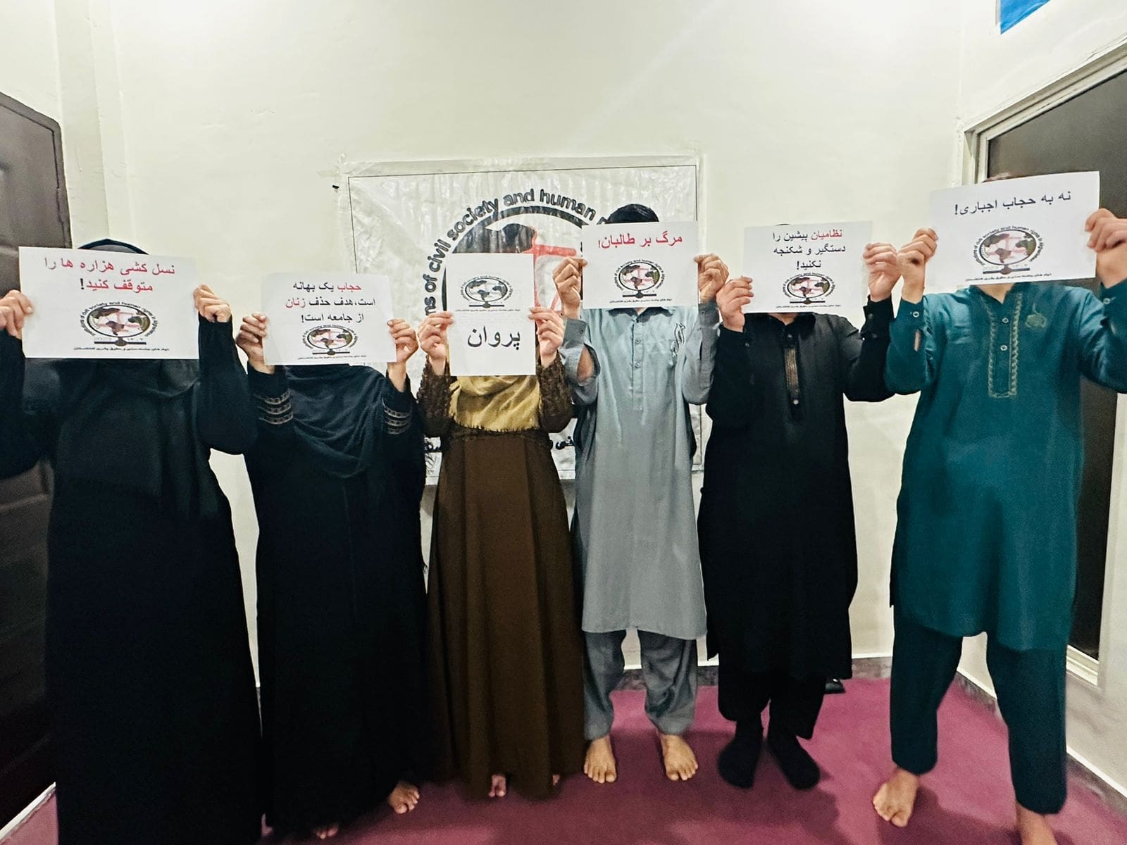 این معترضان روز شنبه، ۷دلو/ بهمن در ولایت/استان پروان تحت نام «انسانیت و آزادی» بازداشت زنان و مردان را اقدام خودسرانه از سوی طالبان عنوان کردند. آنان رژیم طالبان را تروریست خطاب کرده و افزودهاند: «از آنجاییکه مردم و جهان شاهد اوضاع حاکم بعد از بهقدرت رسیدن گروه تروریستی طالبان از وضعیت اسفبار زنان و مردان در این کشور قرار دارند رفتار گذشته و حال گروه طالبان بالای بانوان و مردان در کابل و سائر ولایات/استانها بهبهانه های مقاومتی، بغاوتگر و بیحجابی انجام گردید/میگردد و بهزندان منتقل میگردند و در زندانهای این گروه هرروز شکنجه گردیده جان میدهند و تعدادی از بانوان بعد از رهایی از زندان گروه تروریستی طالب دست به خودکشی زده و به زندگی دایمی خود نقطه پایان داده است.» این مدافعان حقوق بشر با محکوم کردن این اقدام از سازمان ملل و حقوق بشر خواسته تا در برابر رفتار طالبان موقف جدی و روشن اتخاذ کنند و با سرنوشت ۴۰ میلیون نفوس بازیهای دوگانه انجام ندهند.