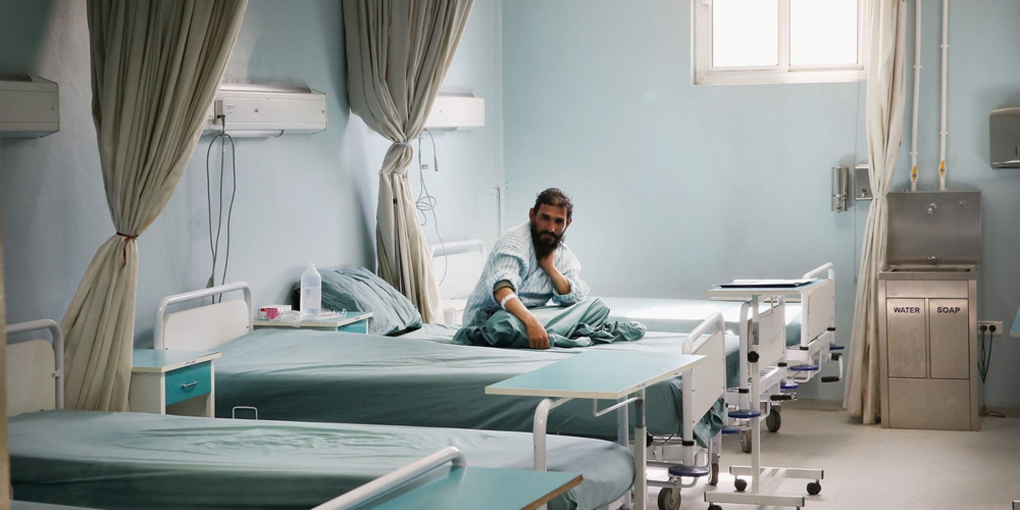GARDEZ, AFGHANISTAN - MARCH 21: A Afghan National Army officer sit on his bed at the Paktia Regional Military Hospital at FOB Thunder on March 21, 2014 near Gardez, Afghanistan. The hospital, operated by the Afghan Army, treats wounded and sick soldiers and police from the Afghan National Security Forces (ANSF). Soldiers with the U.S. Army's 3rd Brigade Combat Team, 10th Mountain Division stationed at nearby FOB Lightning advise and assist the staff at the hospital. (Photo by Scott Olson/Getty Images)